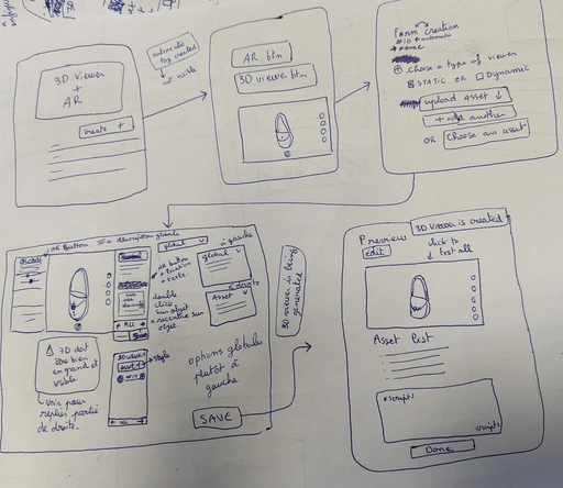 To clarify what was going to be needed, I made a few drawings to better define the two types of viewers users would be able to create via our platform (standard and dynamic). I also made a first version of the different userflows to be sure everybody understood what was going to be done and avoid any communication misunderstanding.